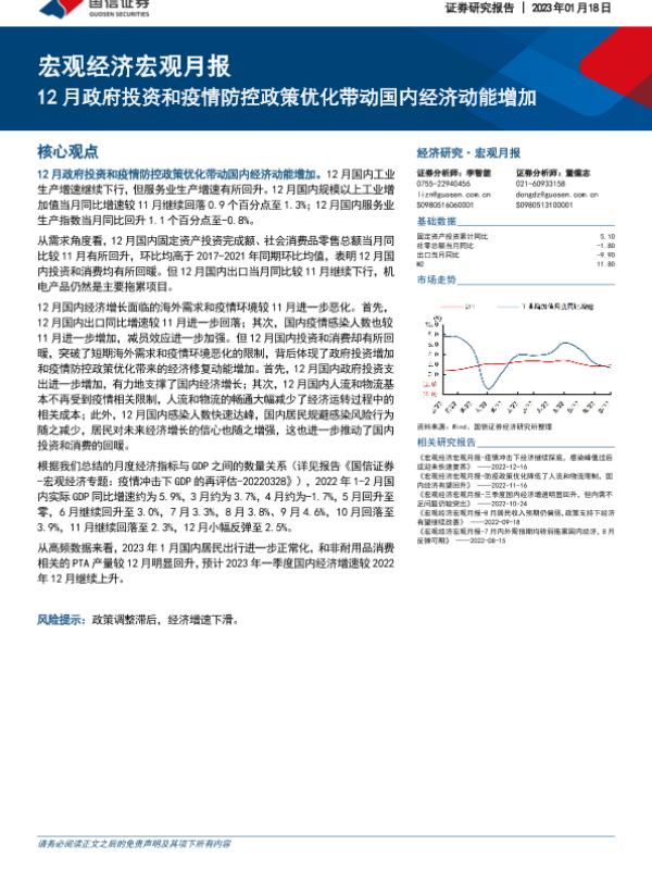 【国信证券】【20230118】宏观经济宏观月报:12月政府投资和疫情防控政策优化带动国内经济动能增加-23页