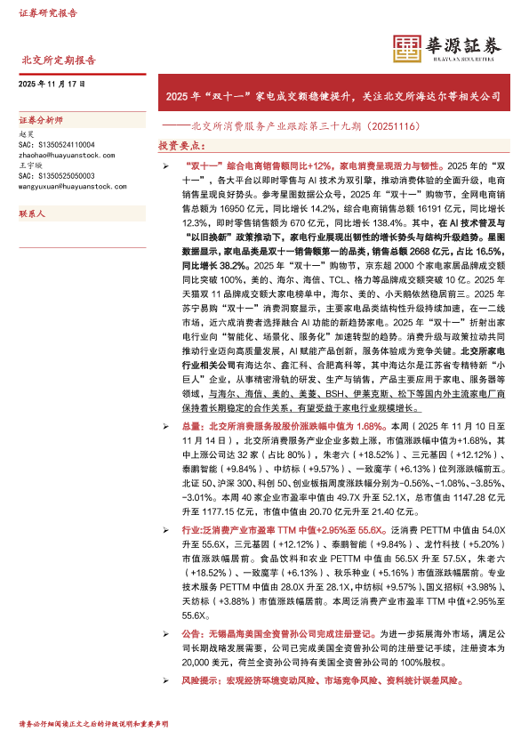 【华源证券】【202511】2025年“双十一”家电成交额稳健提升,关注北交所海达尔等相关公司-15页