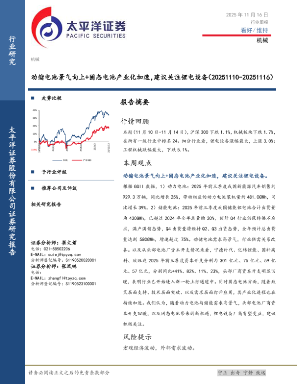 【太平洋证券】【202511】动储电池景气向上+固态电池产业化加速,建议关注锂电设备-12页