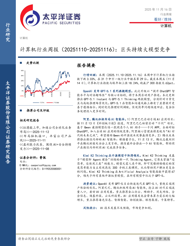【太平洋证券】【202511】计算机行业周报:巨头持续大模型竞争-11页