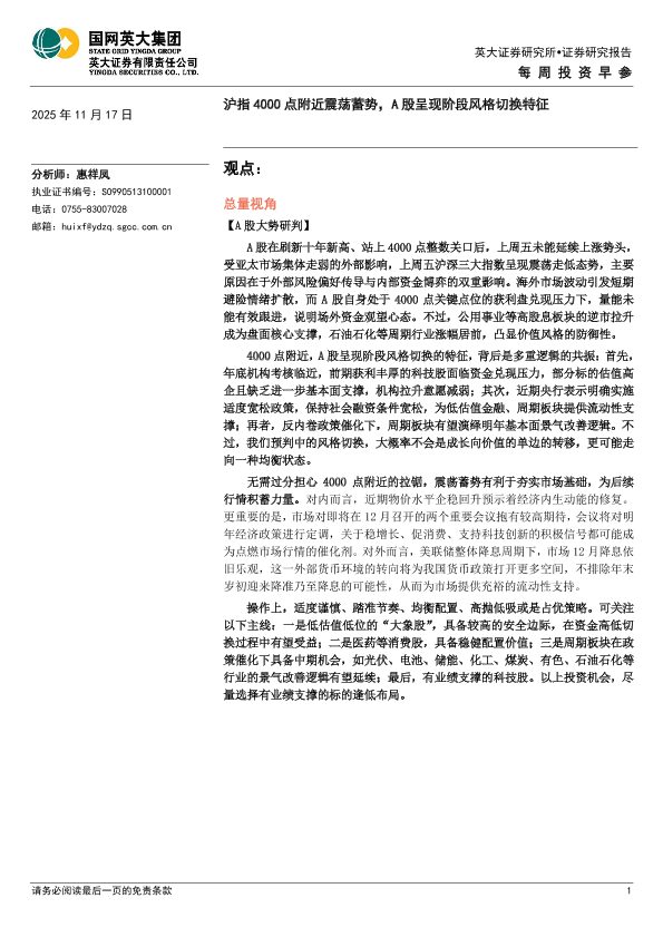 【英大证券】【202511】沪指4000点附近震荡蓄势,A股呈现阶段风格切换特征-5页