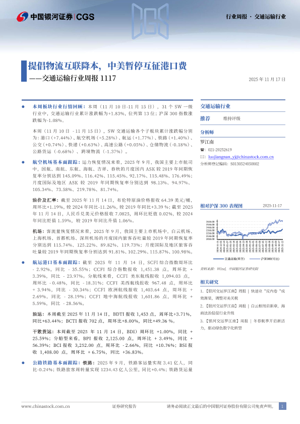 【银河证券】【202511】提倡物流互联降本,中美暂停互征港口费-19页
