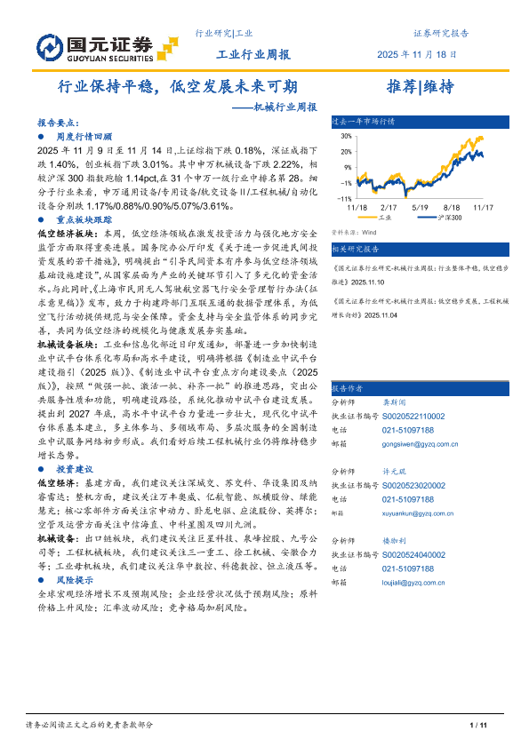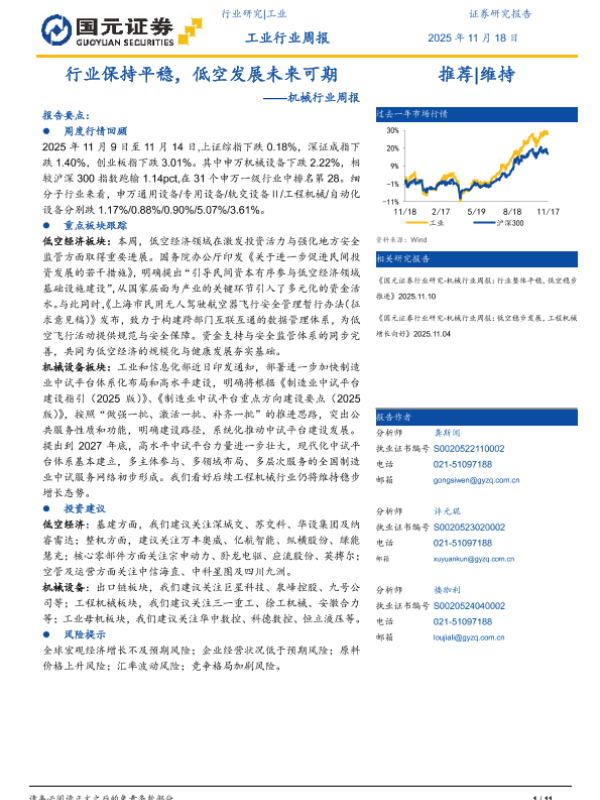 【国元证券】【202511】保持平稳,低空发展未来可期——机械行业周报-11页