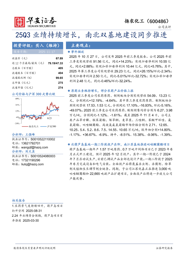 投资评级 农药 原药 基地建设 盈利预测