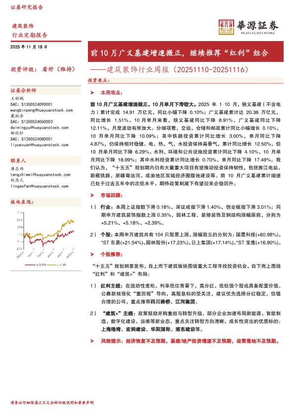 【华源证券】【202511】建筑装饰行业周报:前10月广义基建增速微正,继续推荐“红利”组合-11页