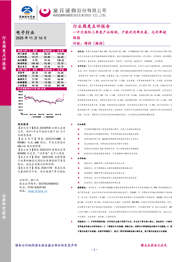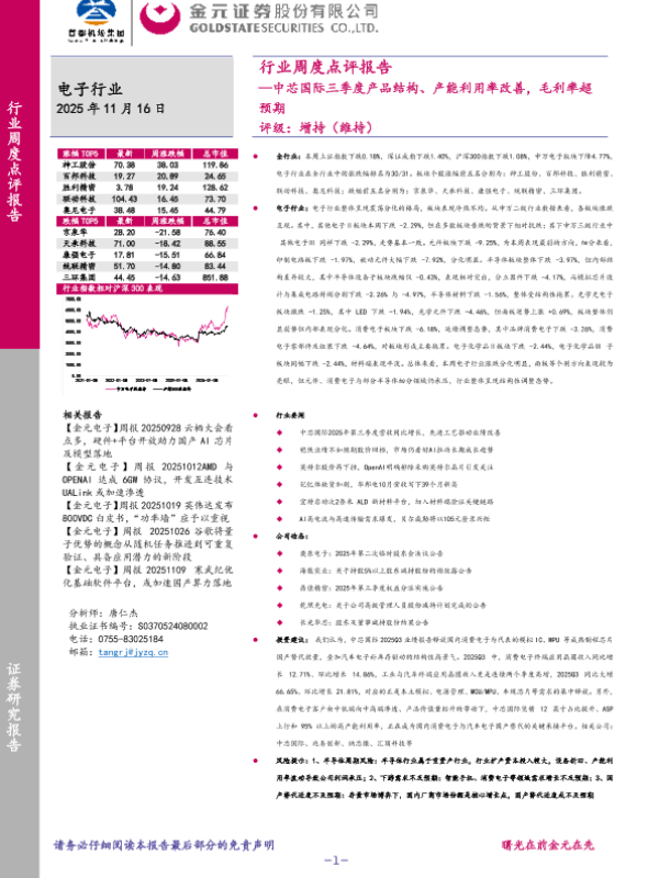 【金元证券】【202511】中芯国际三季度产品结构、产能利用率改善,毛利率超预期-26页