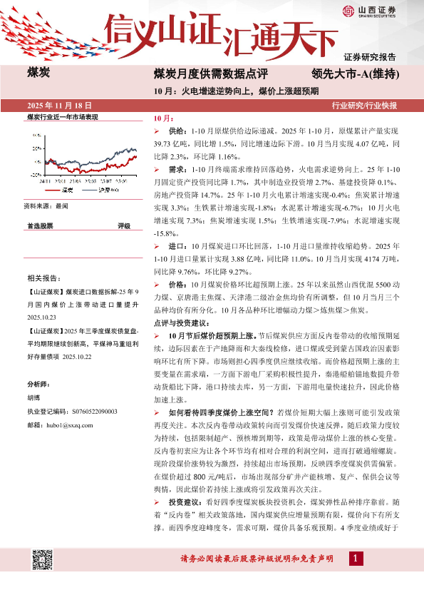 【山西证券】【202511】煤炭月度供需数据点评 领先大市-A(维持)-8页