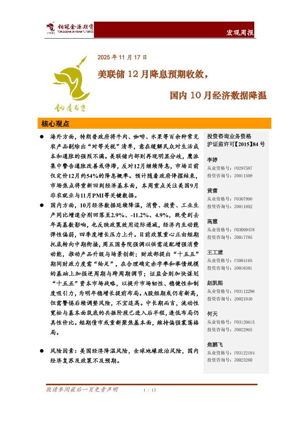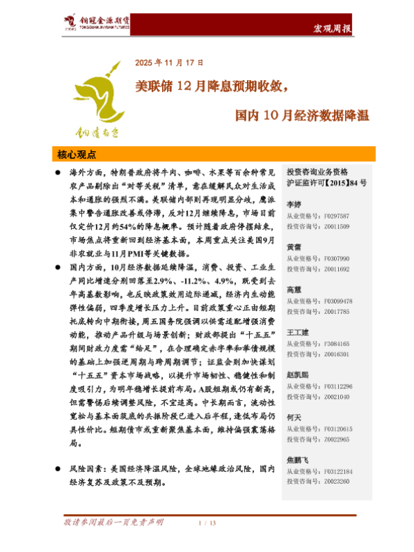 【铜冠金源期货】【202511】美联储12月降息预期收敛,国内10月经济数据降温-13页