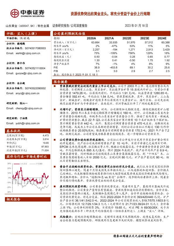 山东黄金 投资评级 股价分析 资源禀赋 黄金行业