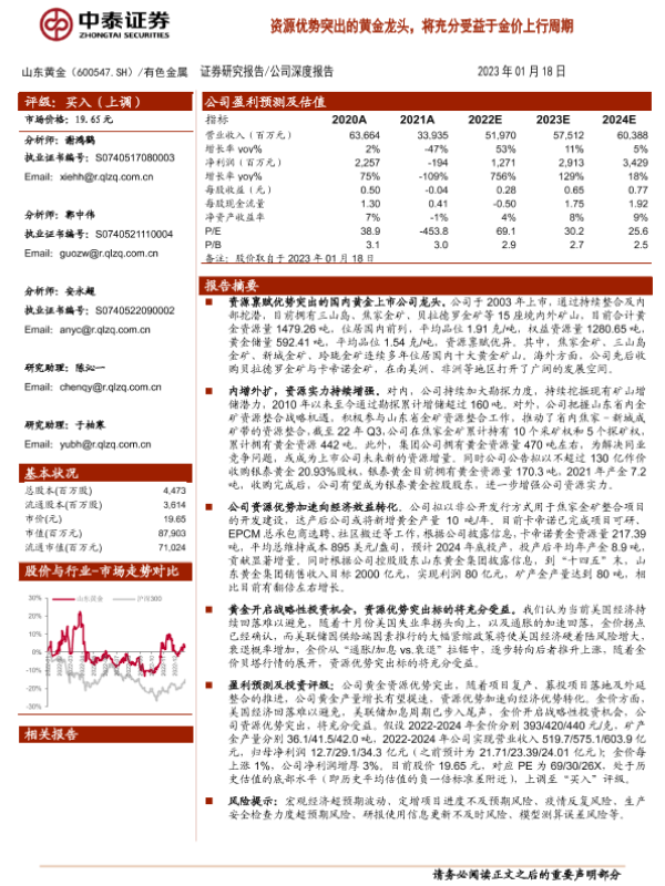 【中泰证券】【20230118】山东黄金(600547)资源优势突出的黄金龙头,将充分受益于金价上行周期-29页