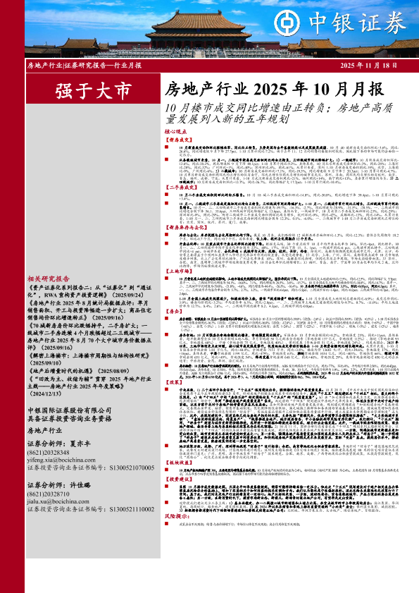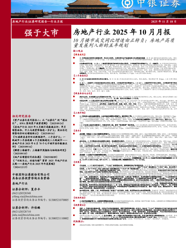 【中银证券】【202510】房地产行业2025年10月月报:10月楼市成交同比增速由正转负;房地产高质量发展列入新的五年规划-28页