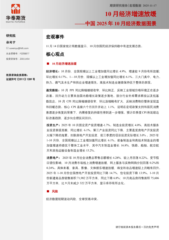 【华泰期货】【202511】中国2025年10月经济数据图景:10月经济增速放缓-20页