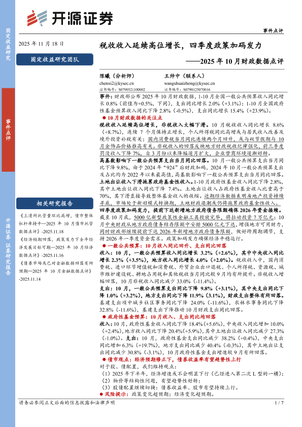 【开源证券】【202511】税收收入延续高位增长,四季度政策加码发力——2025年10月财政数据点评-7页