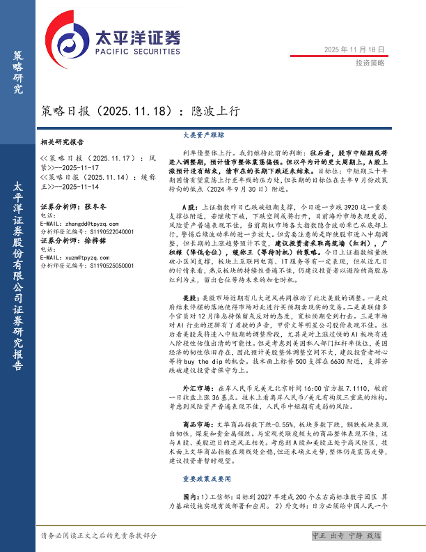 【太平洋证券】【202511】策略日报(2025.11.18):隐波上行-12页