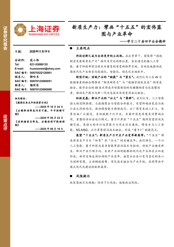 【上海证券】【202511】新质生产力:擘画“十五五”的宏伟蓝图与产业革命-10页