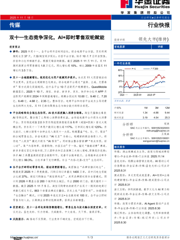 【华金证券】【202511】双十一生态竞争深化,AI+即时零售双轮赋能-3页