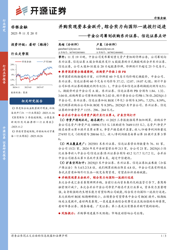 【开源证券】【202511】中金公司筹划收购东兴证券、信达证券点评:并购实现资本金跃升,综合实力向国际一流投行迈进-3页