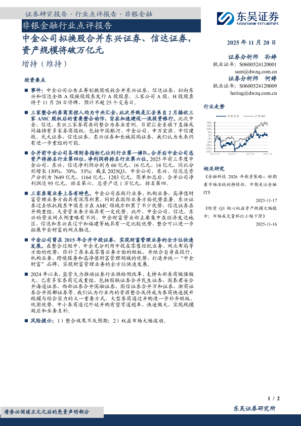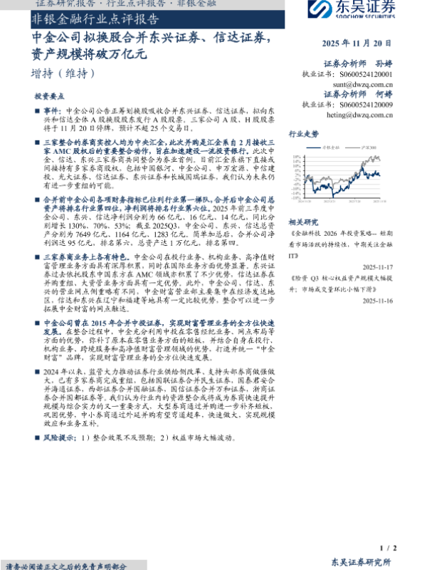 【东吴证券】【202511】非银金融行业点评报告·中金公司拟换股合并东兴证券、信达证券,资产规模将破万亿元-2页