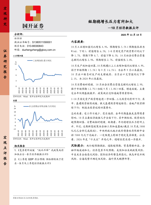 宏观经济 稳增长 固定资产投资 工业增加值 社会消费品零售总额
