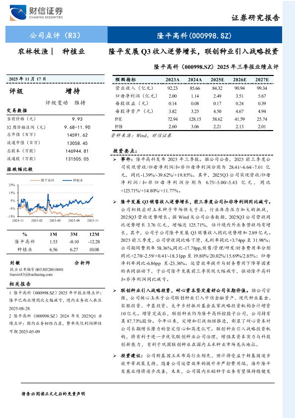 【财信证券】【202511】隆平高科(000998.SZ)2025年三季报业绩点评-4页