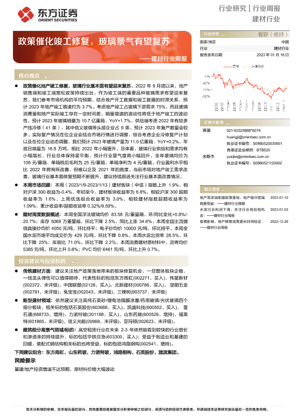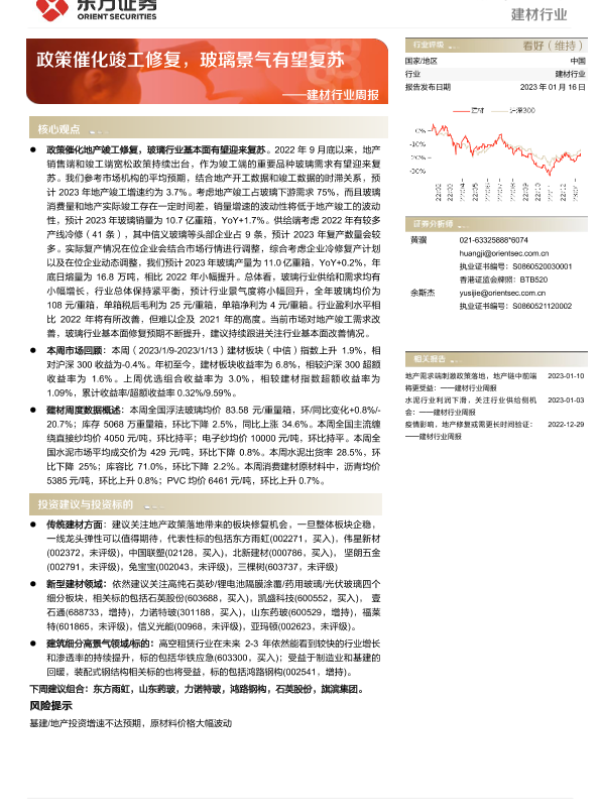 【东方证券】【20230116】建材行业周报:政策催化竣工修复,玻璃景气有望复苏-22页