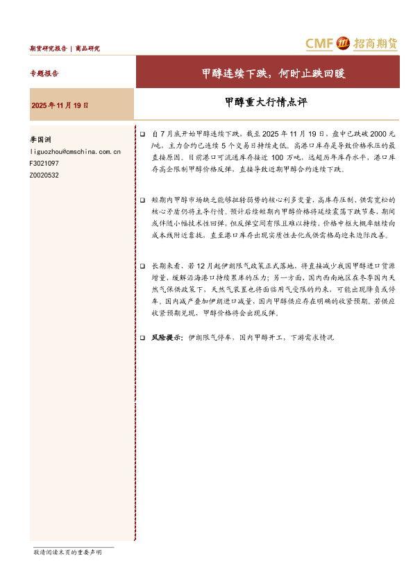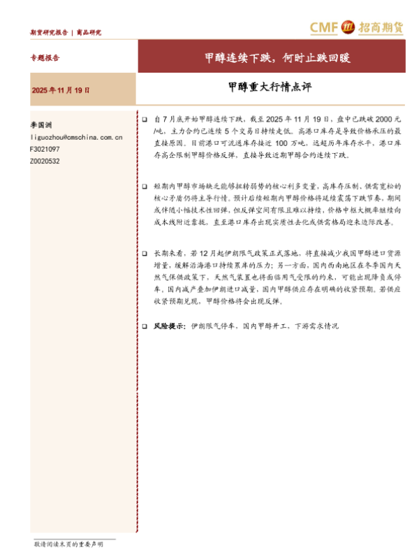 【招商期货】【202511】甲醇连续下跌,何时止跌回暖-16页
