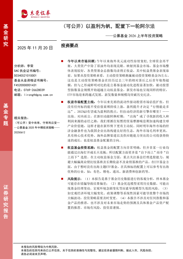 【东莞证券】【202511】公募基金2026上半年投资策略_(可公开)以盈利为帆_配置下一轮阿尔法-19页