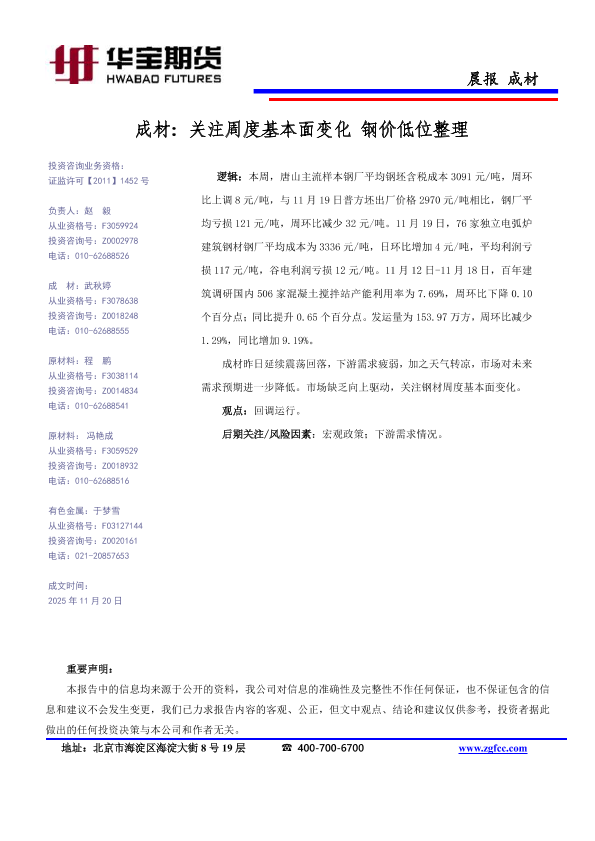 【华宝期货】【202511】成材_关注周度基本面变化_钢价低位整理-1页