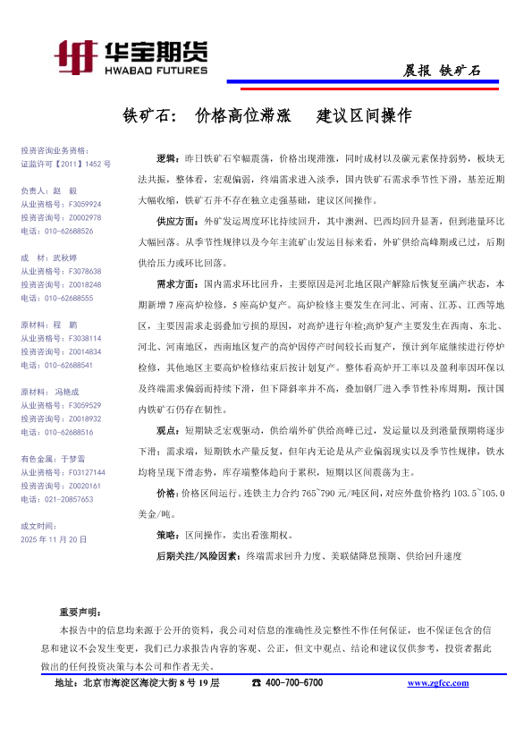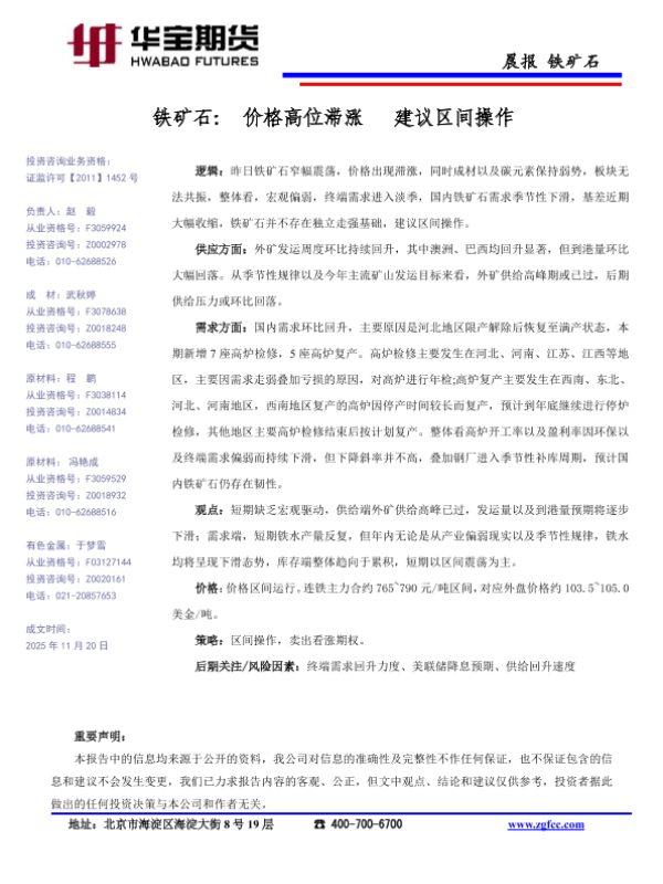 【华宝期货】【202511】铁矿石_价格高位滞涨_建议区间操作-1页