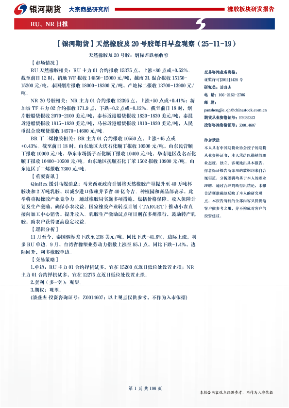 【银河期货】【202511】天然橡胶及20号胶每日早盘观察-196页