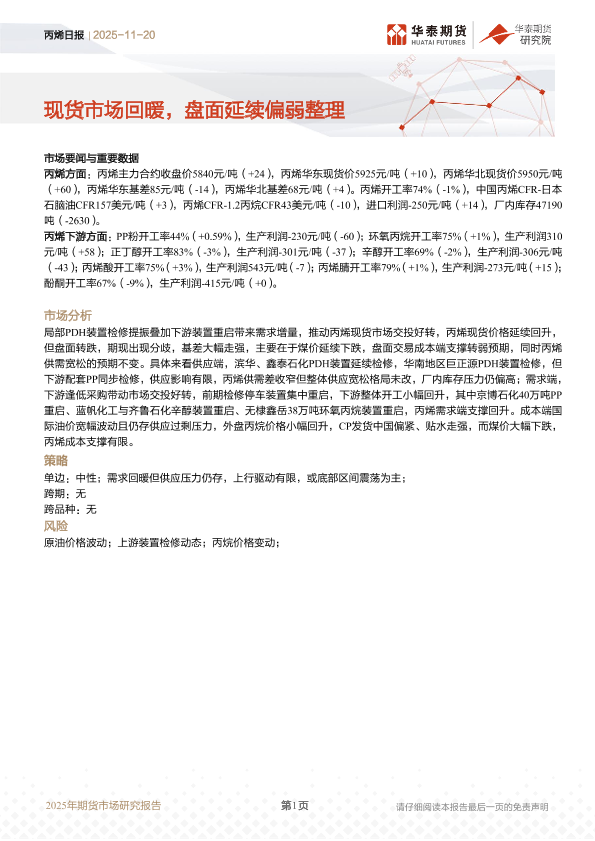 【华泰期货】【202511】丙烯日报_现货市场回暖_盘面延续偏弱整理-10页