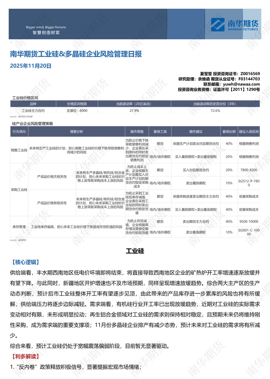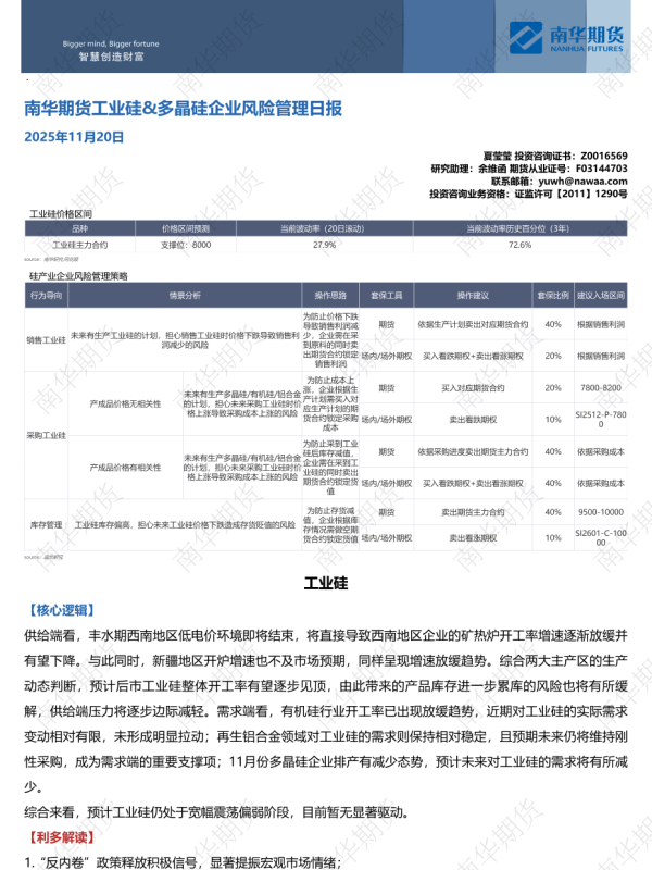 【南华期货】【202511】工业硅&多晶硅企业风险管理日报-10页