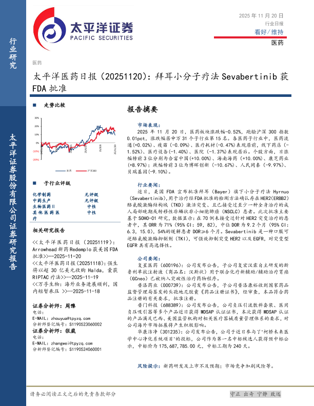 【太平洋证券】【202511】太平洋医药日报(20251120):拜耳小分子疗法 Sevabert in ib 获 FDA批准-3页