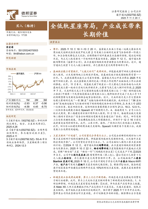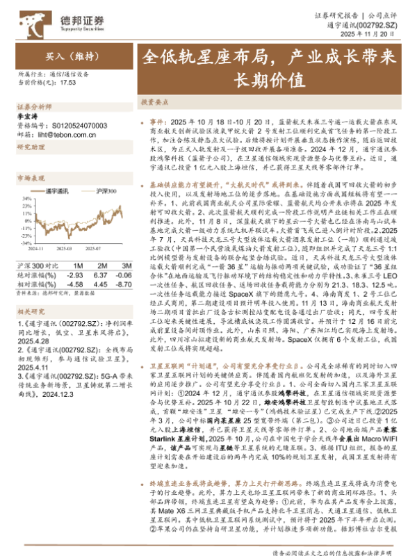 【德邦证券】【202511】全低轨星座布局 产业成长带来长期价值-4页