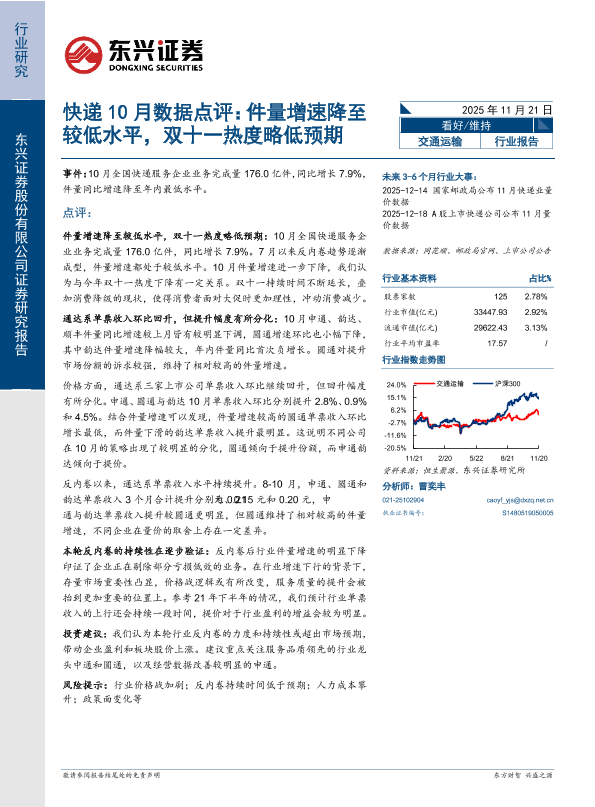 【东兴证券】【202511】快递10月数据点评:件量增速降至较低水平,双十一热度略低预期-10页
