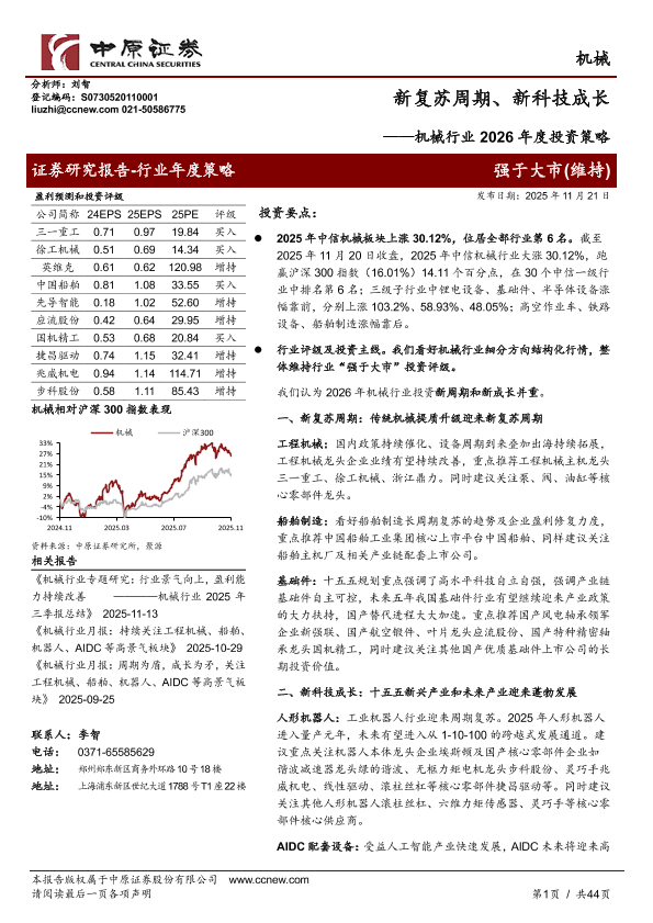 【中原证券】【202511】新复苏周期、新科技成长——机械行业2026年度投资策略-44页