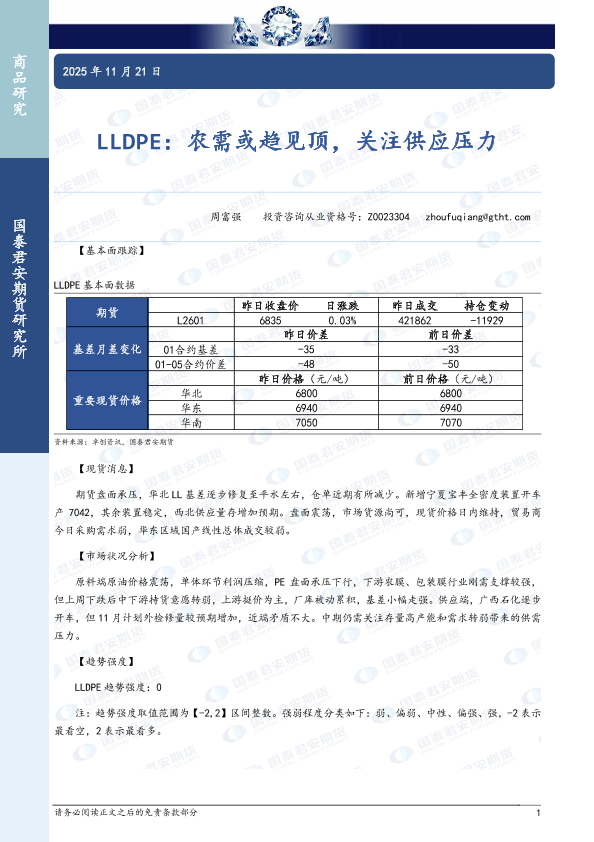 【国泰君安期货】【202511】LLDPE:农需或趋见顶,关注供应压力-2页