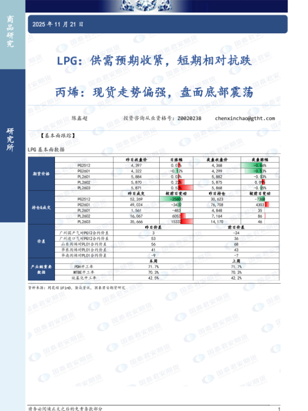 【国泰君安期货】【202511】LPG:供需预期收紧,短期相对抗跌 丙烯:现货走势偏强,盘面底部震荡-4页