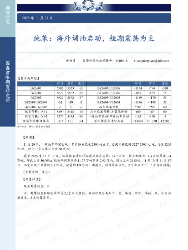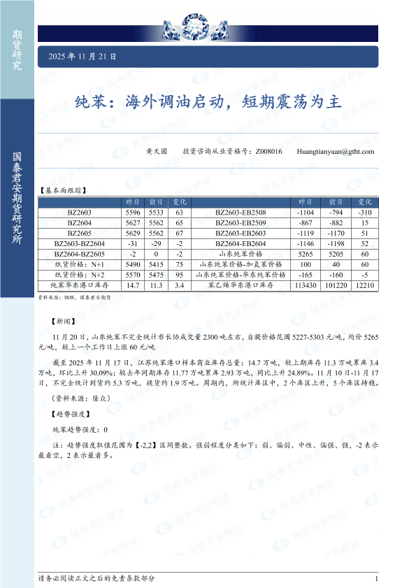 【国泰君安期货】【202511】纯苯:海外调油启动,短期震荡为主-2页