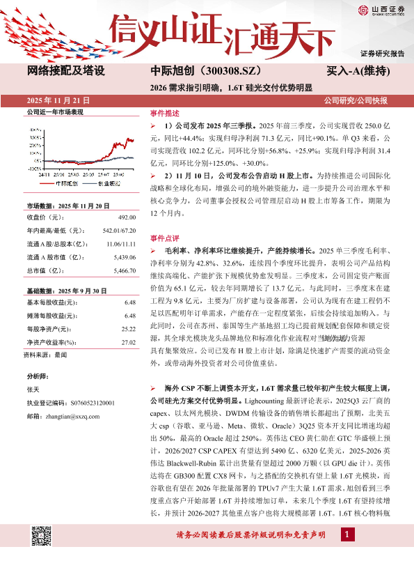 【山西证券】【202511】2026需求指引明确,1.6T硅光交付优势明显-5页