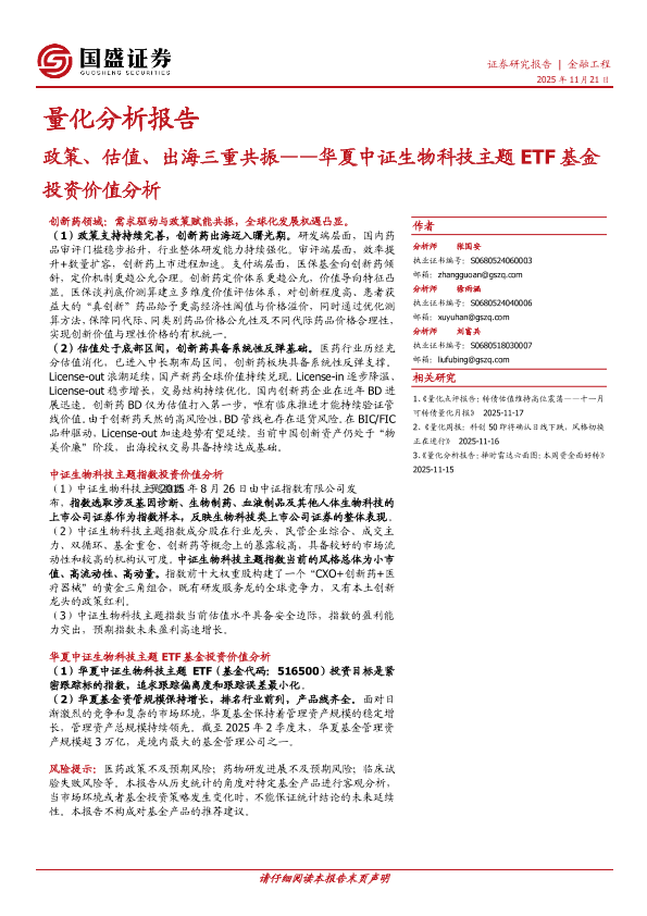 【国盛证券】【2025】政策、估值、出海三重共振——华夏中证生物科技主题 ETF基金投资价值分析-16页