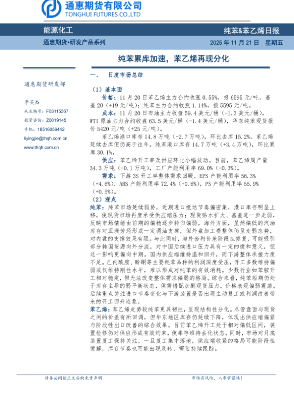 【通惠期货】【202511】纯苯&苯乙烯日报-7页