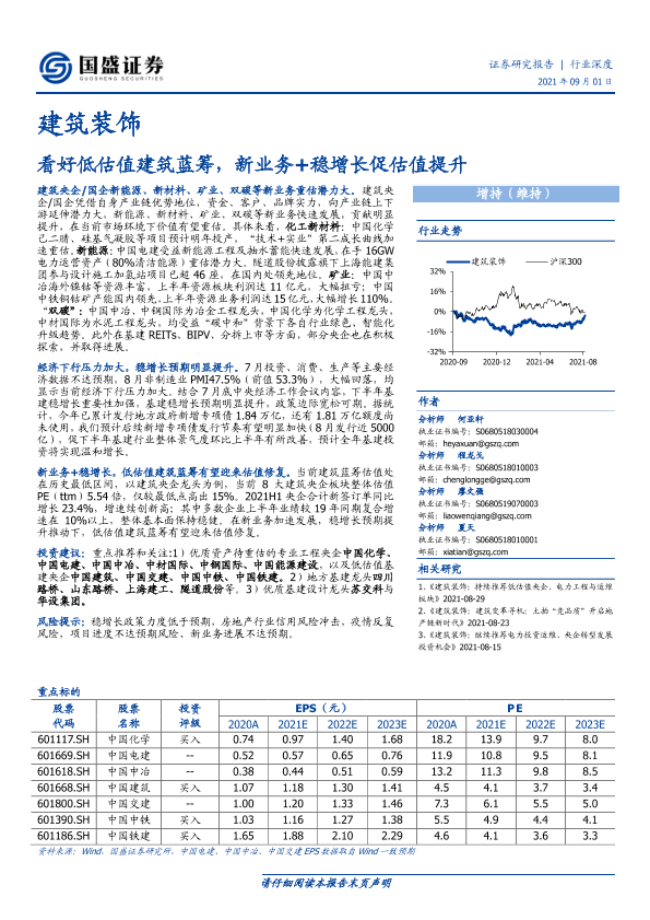【国盛证券】【20210901】建筑装饰行业:看好低估值建筑蓝筹,新业务+稳增长促估值提升-23页