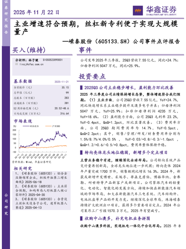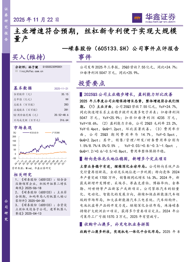 【华鑫证券】【202511】主业增速符合预期,丝杠新专利便于实现大规模量产-5页