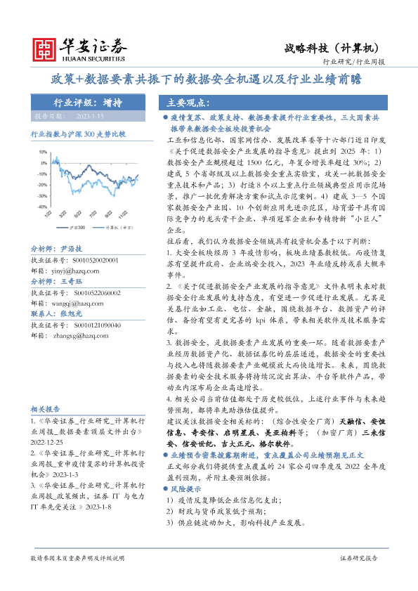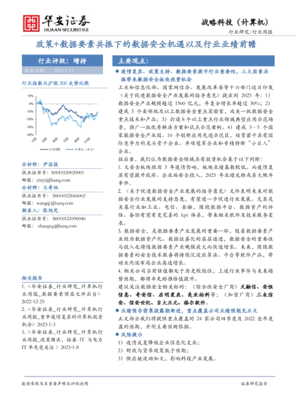 【华安证券】【20230115】战略科技(计算机)行业周报:政策+数据要素共振下的数据安全机遇以及行业业绩前瞻-14页