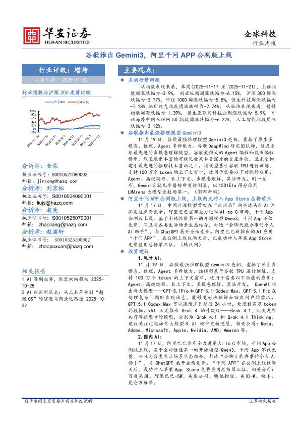 【华安证券】【202511】谷歌推出Gemini3,阿里千问APP公测版上线-29页