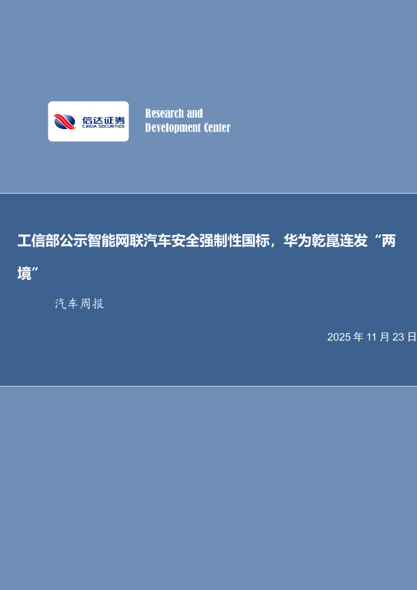 【信达证券】【202511】工信部公示智能网联汽车安全强制性国标,华为乾崑连发“两境”-11页