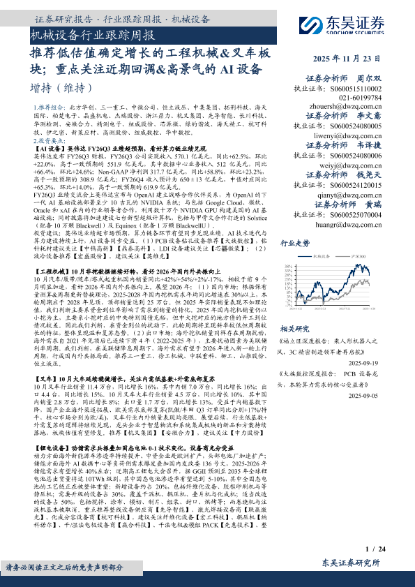 【东吴证券】【202511】机械设备行业跟踪周报-24页