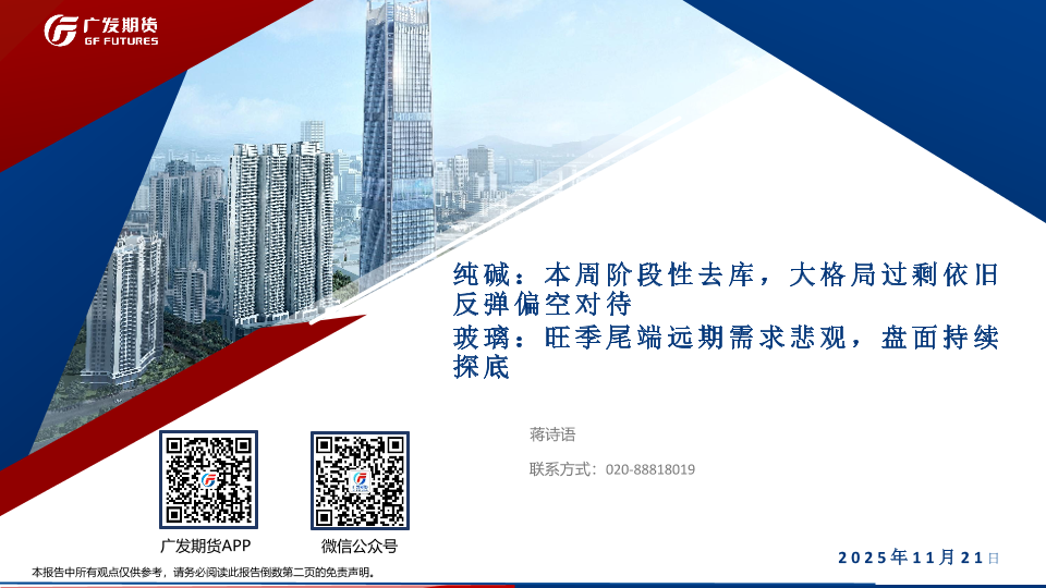 【广发期货】【202511】纯碱:本周阶段性去库,大格局过剩依旧反弹偏空对待 玻璃:旺季尾端远期需求悲观,盘面持续探底-40页