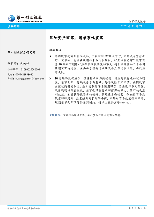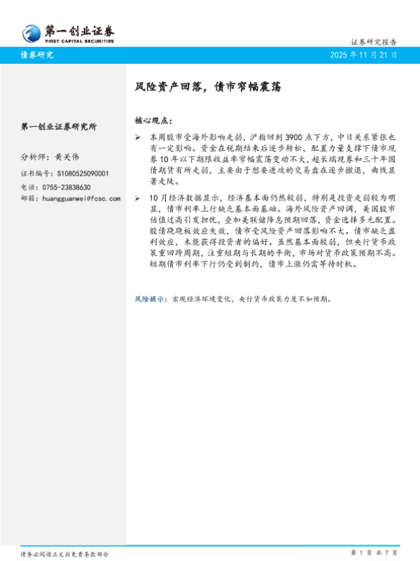 【第一创业证券】【202311】风险资产回落,债市窄幅震荡-7页